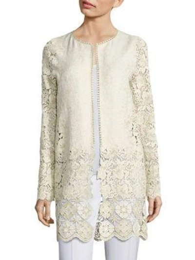 Elie Tahari Jaya Metallic Brocade Lace Jacket In Ivory Yellow Very well made.