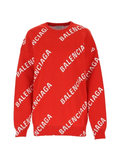 Balenciaga Oversized Logo Wool blend Knit Jumper In Red ModeSens Very well made.