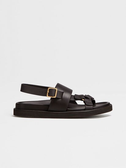Dark Brown Leather Panarea Sandals FW23 26477239 Zegna CH Very well made.