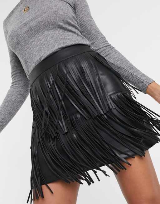 River Island faux leather fringed mini skirt in black ASOS Very well made.