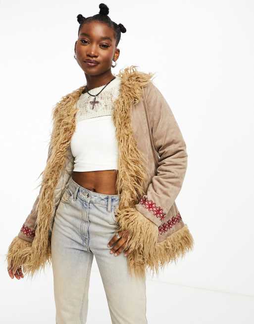 Tammy Girl retro faux suede coat with embroidered hem Very well made.