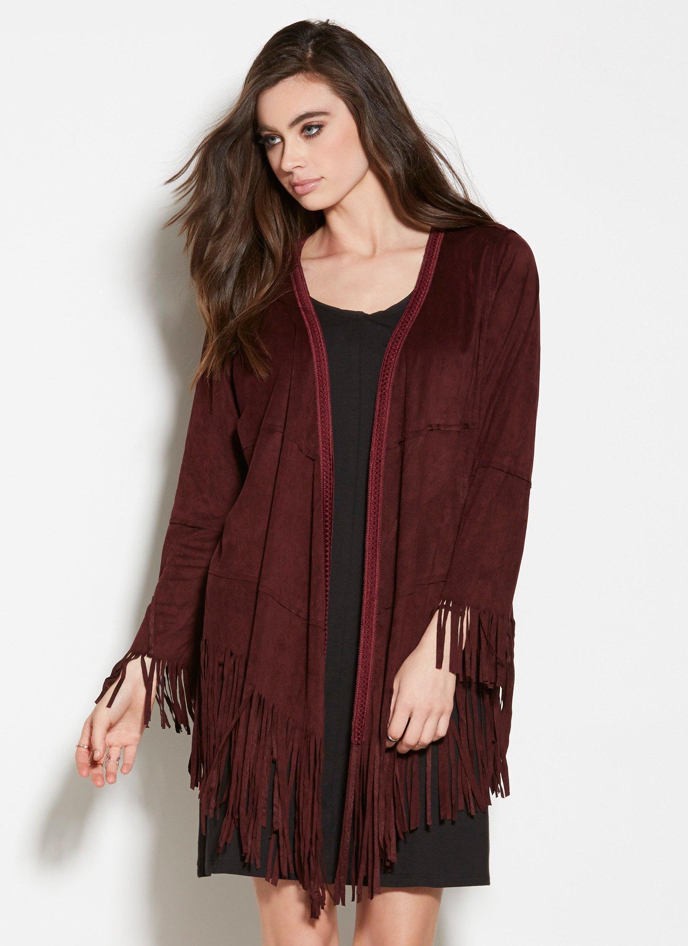 Plus Size Casual Cardigan Women s Plus Solid Faux Pearl Decor Faux Suede Fringe Trim Vest Cardigan Very well made.