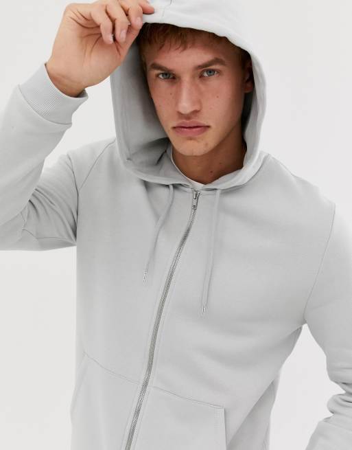 ASOS DESIGN Felpa grigia con cappuccio e zip Very well made.