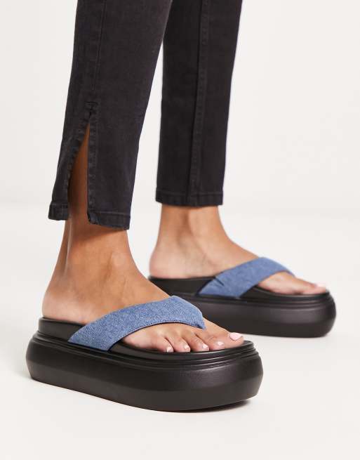 ASOS DESIGN Fiesty Infradito flatform in denim Very well made.