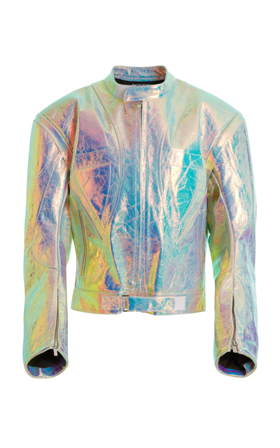 Iridescent Leather Jacket Lavender on Garmentory Very well made.