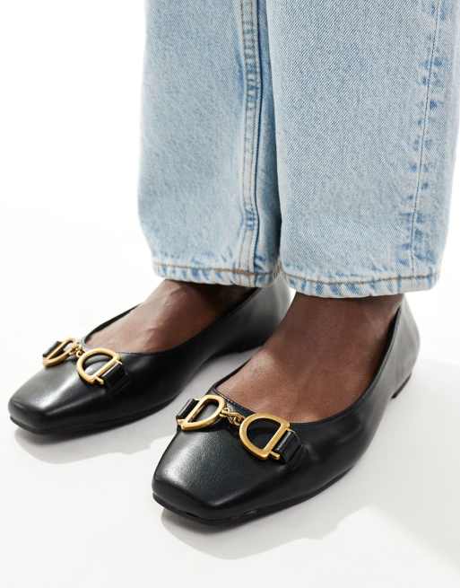 ASOS DESIGN Wide Fit Leighton square toe ballet flats in black ASOS Very well made.