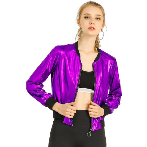 Allegra K Women s Holographic Fashion Stand Collar Metallic Very well made.