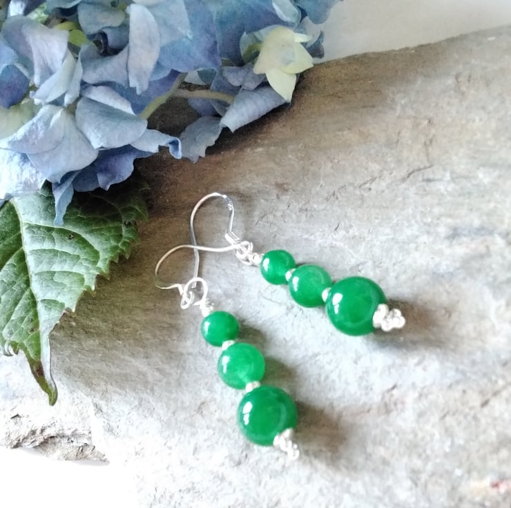 9.55 cts Chinese Green Jade Sterling Silver Ear Folksy Very well made.