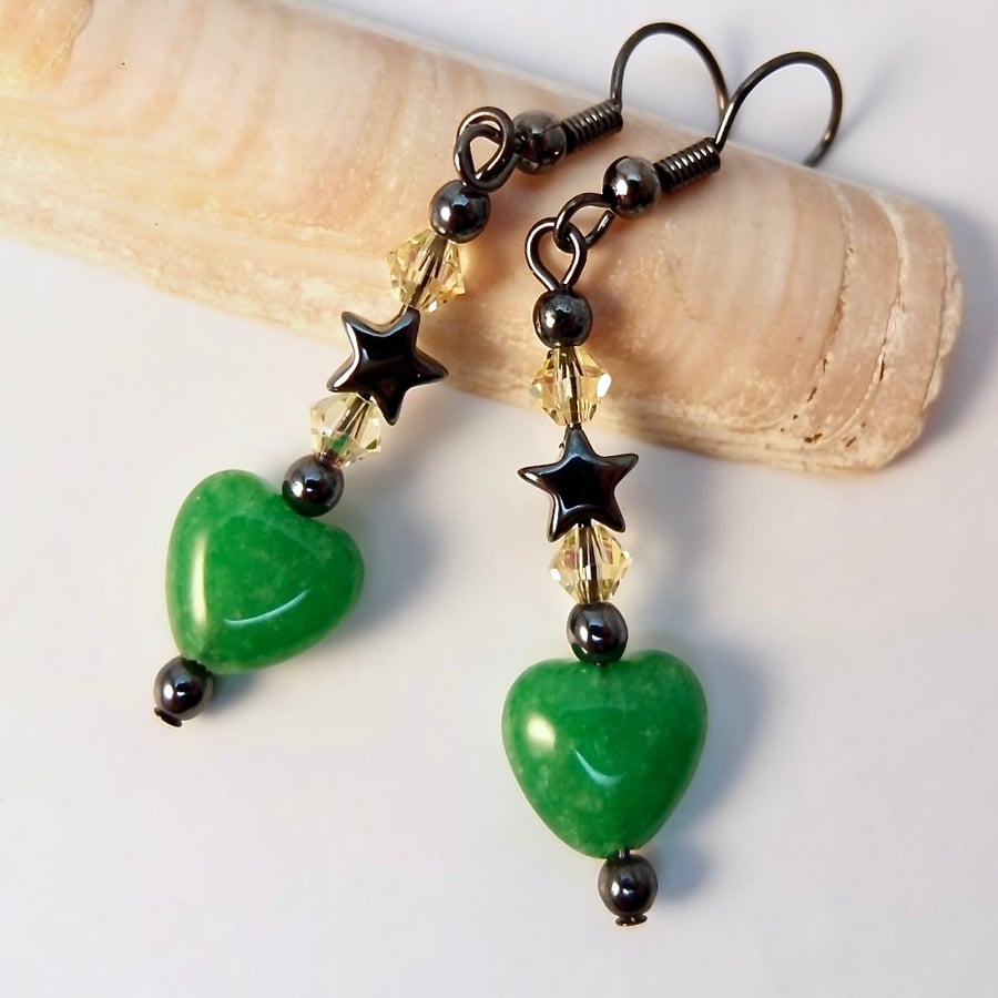 Jade Heart Earrings With Hematite And Swarovski Folksy Very well made.