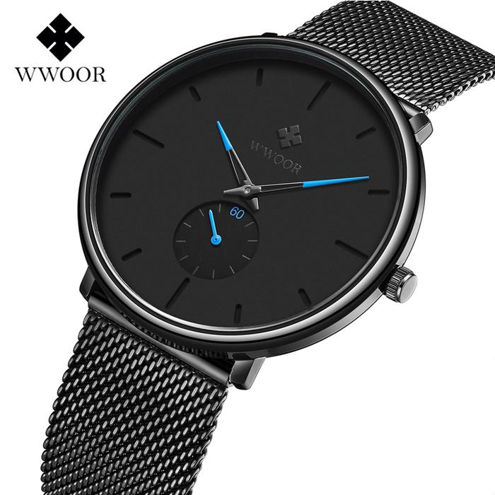 Jam Tangan Tipis Pria Elegan Wwoor 8855 Dark Black Blue Original Very well made.