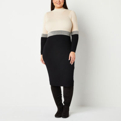 Melonie T Plus Long Sleeve Midi Rib Knit Sweater Dress Very well made.