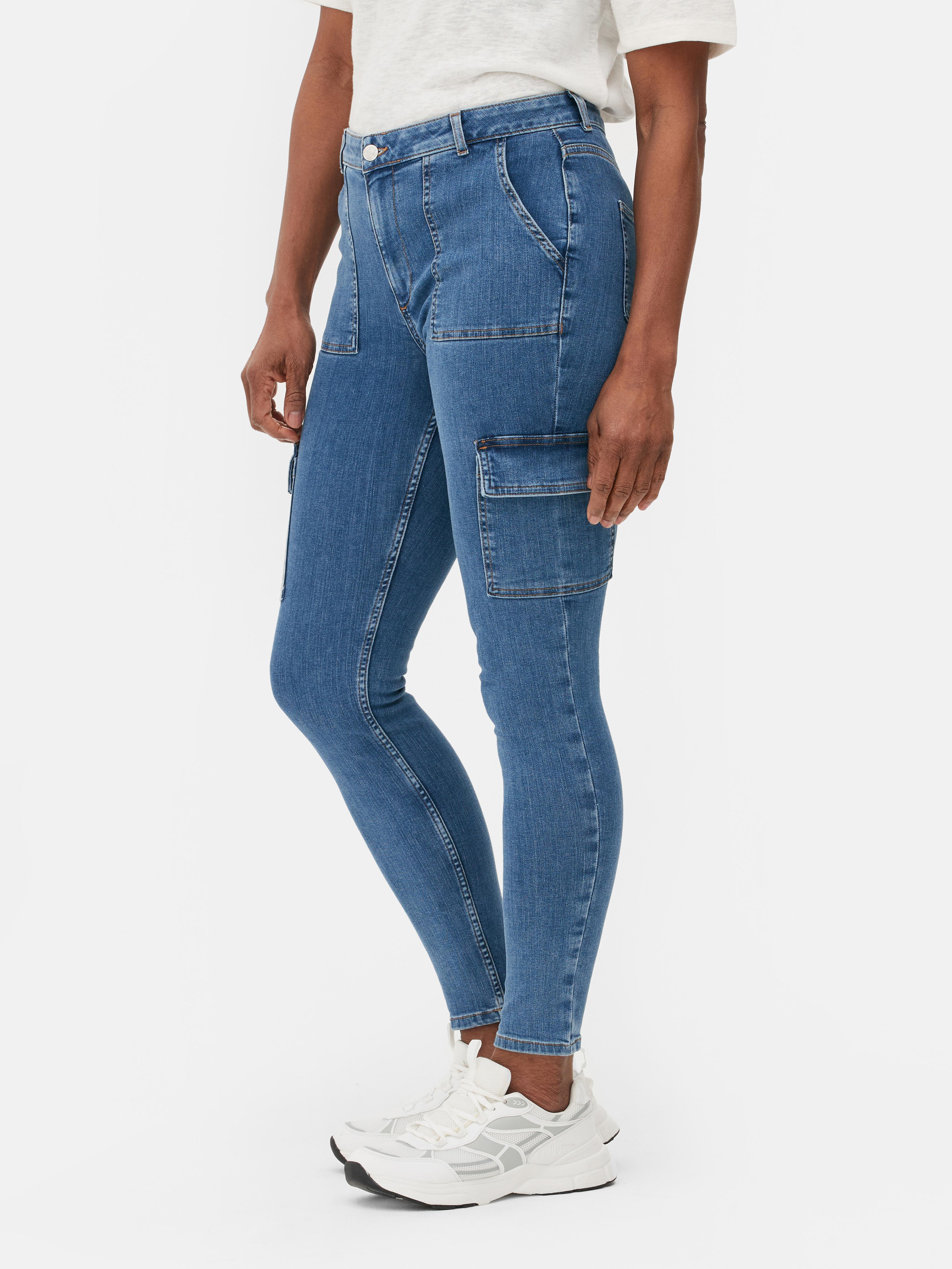 Womens Mid Blue High Waist Cargo Skinny Jeans Primark Very well made.