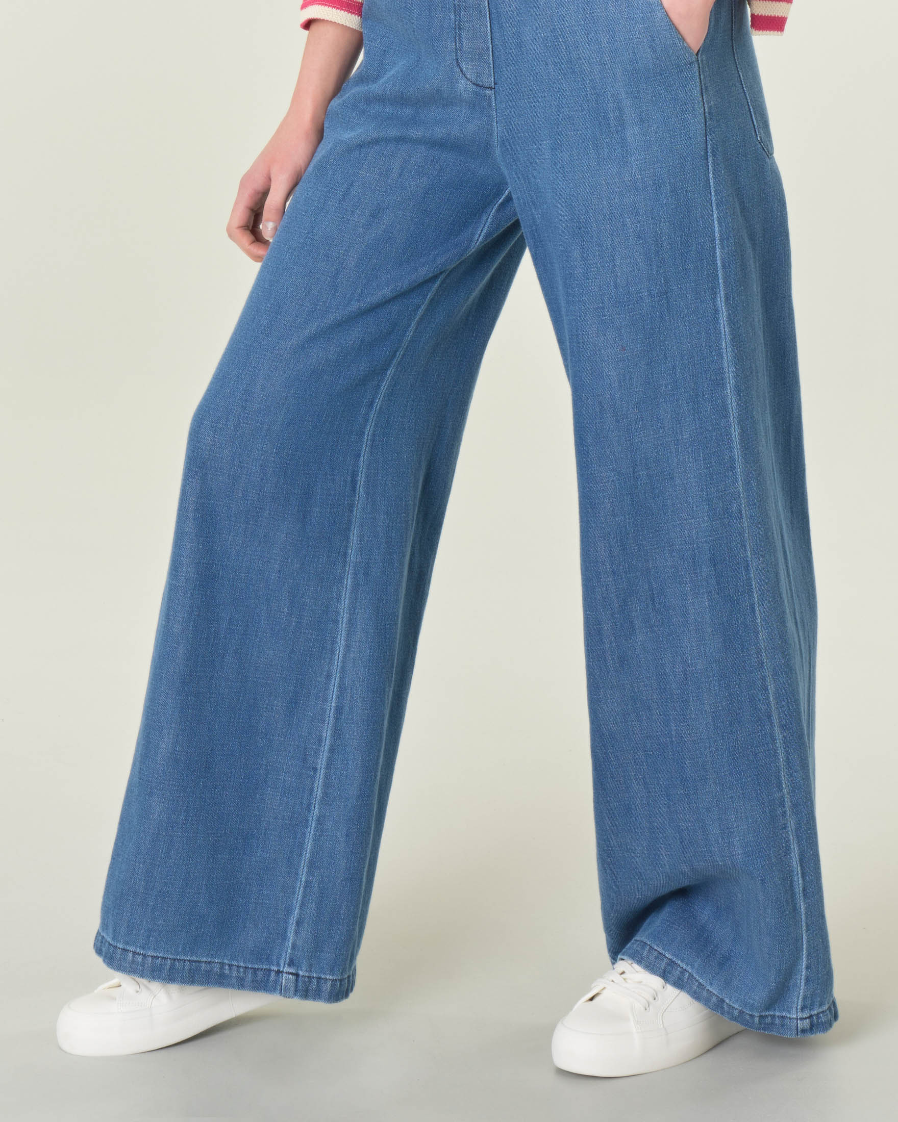 Jeans palazzo in cotone blu super stone washed con elastico Very well made.