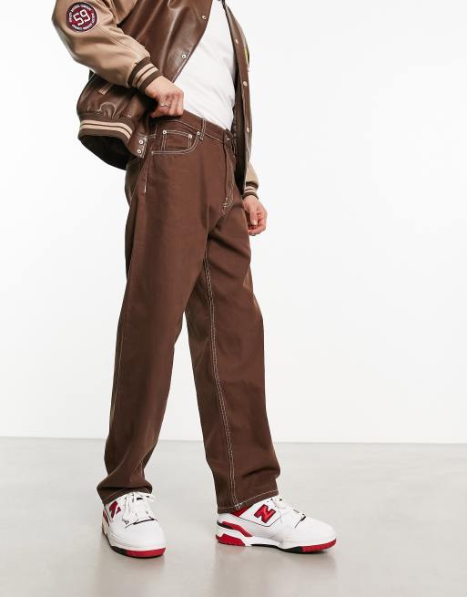 Bershka wide leg contrast stitch jeans in brown Very well made.