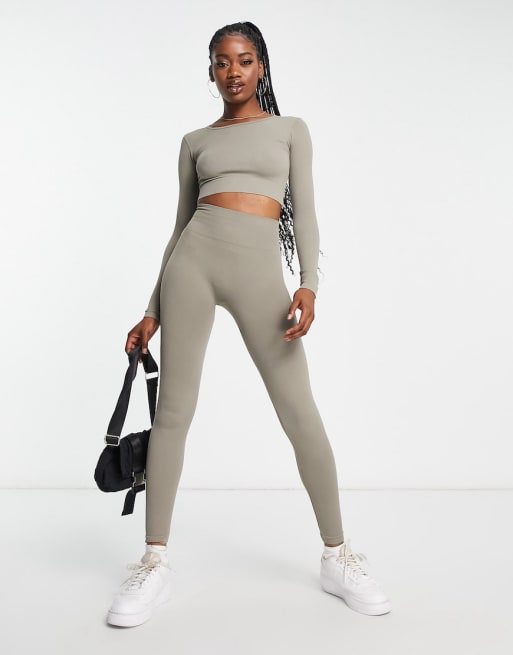 Pull Bear Coordinato con leggings e top color tortora a coste Very well made.