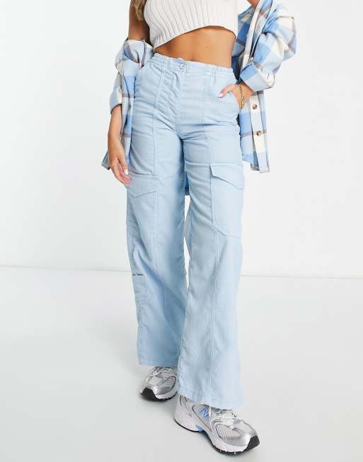 Topshop cord utility straight leg trouser in baby blue Very well made.