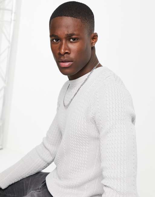ASOS Muscle Fit Lightweight Cable Sweater In Stone Asos menswear Very well made.