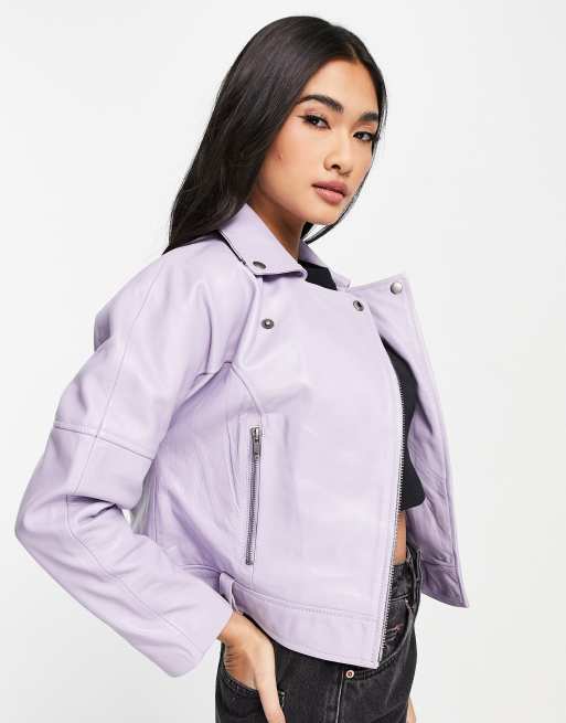 Muubaa Charlie drop shoulder leather biker jacket in lilac Very well made.