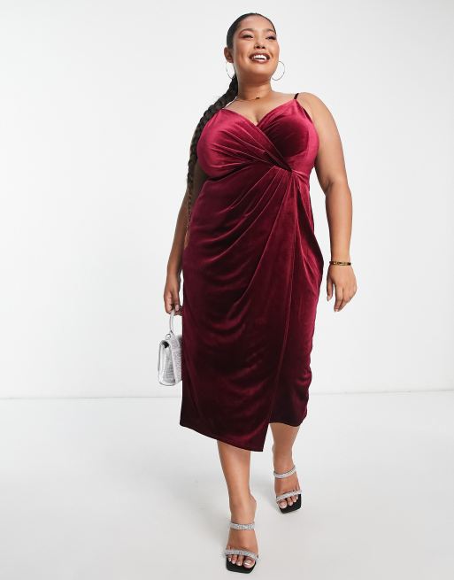 Little Mistress Plus wrap front velvet cami midi dress in ruby Very well made.