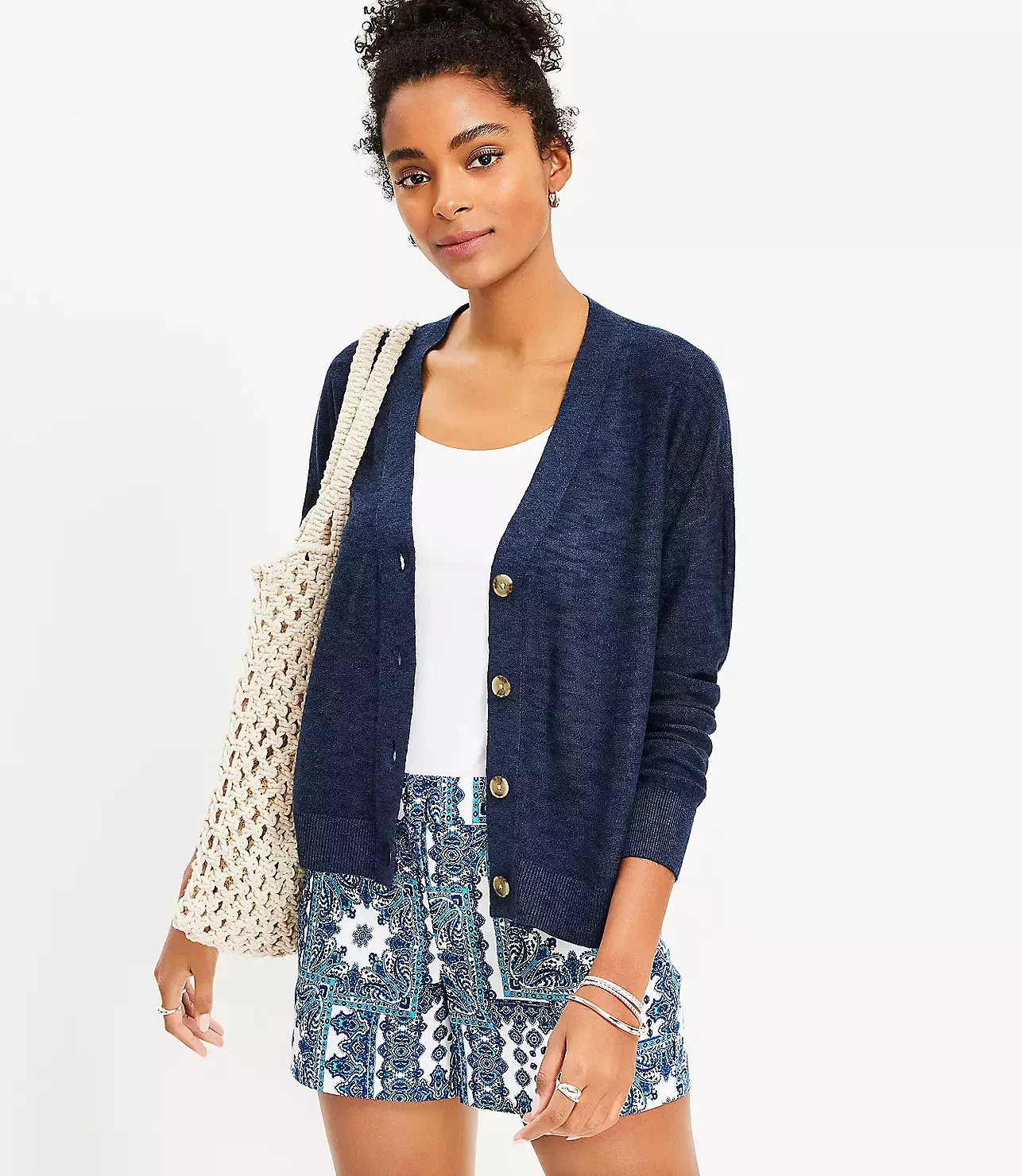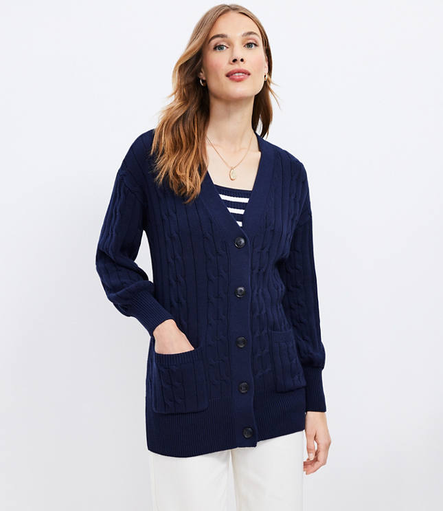 Loft Navy Blue Textured Open Face Cardigan Sweater Very well made.