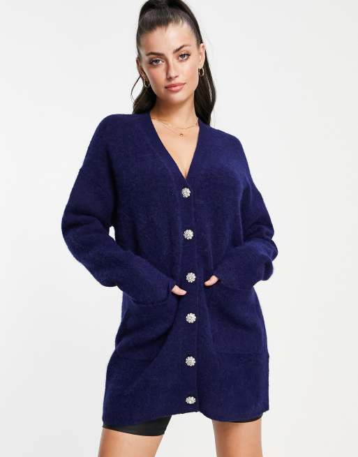 Other Stories oversized longline cardigan with embellished buttons in navy Very well made.