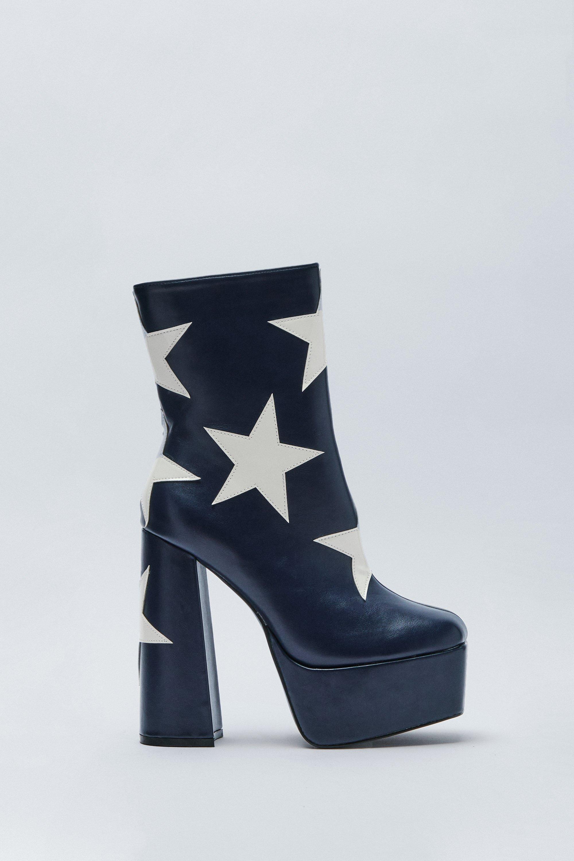 Faux Leather Glitter Star Platform Ankle Boots Very well made.