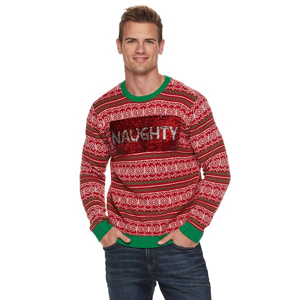 Men s Naughty Nice Sequined Christmas Sweater Very well made.