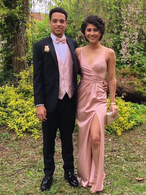 A Line V Neck Backless Navy Blue Pink Long Prom Dresses Backless Navy Blue Pink Formal Dresses Evening Dresses Very well made.