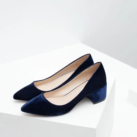 For Real Navy Velvet Ankle Strap Heels Very well made.