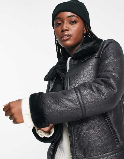 Black Leather Look Borg Trim Crop Aviator Jacket New Look Very well made.