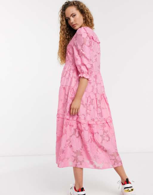 Selected Femme lace midi dress with volume sleeves in pink Very well made.