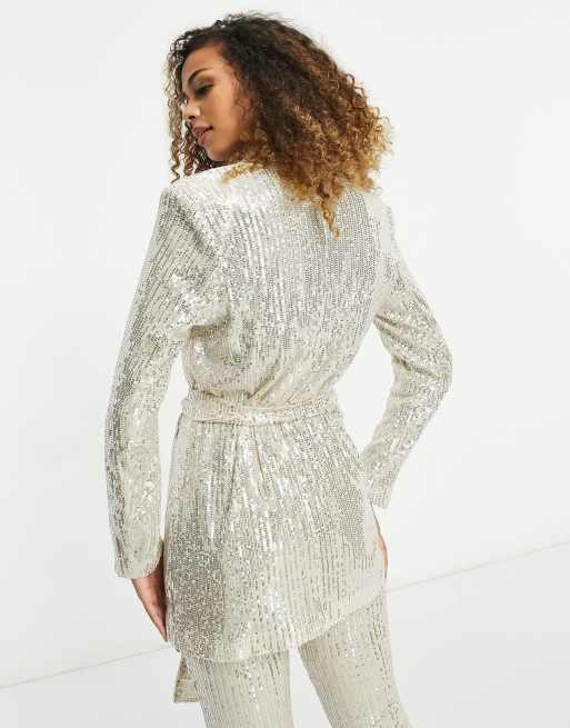 ASOS DESIGN jersey wrap suit blazer in sequin Very well made.