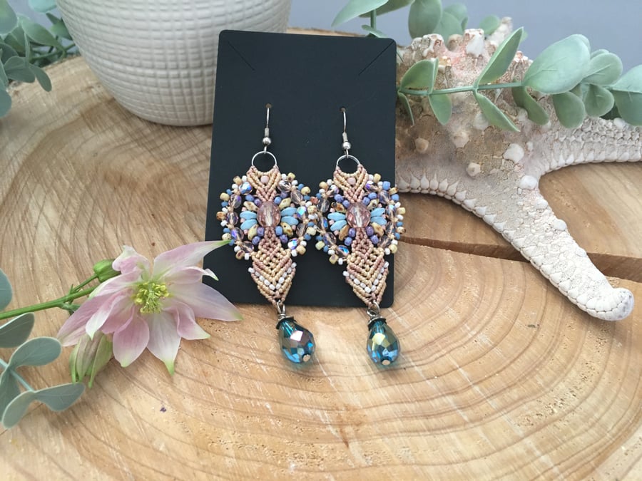 Earrings Delicate Macrame Beaded Earrings lace design earrings boho women Very well made.