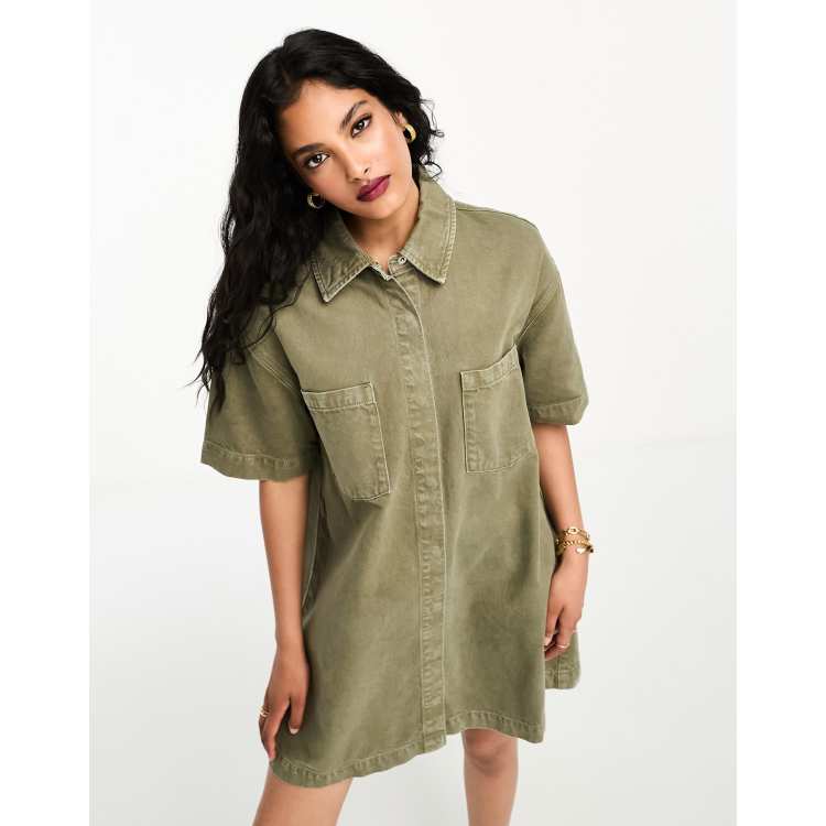 ASOS DESIGN short sleeve denim shirt dress in khaki Very well made.