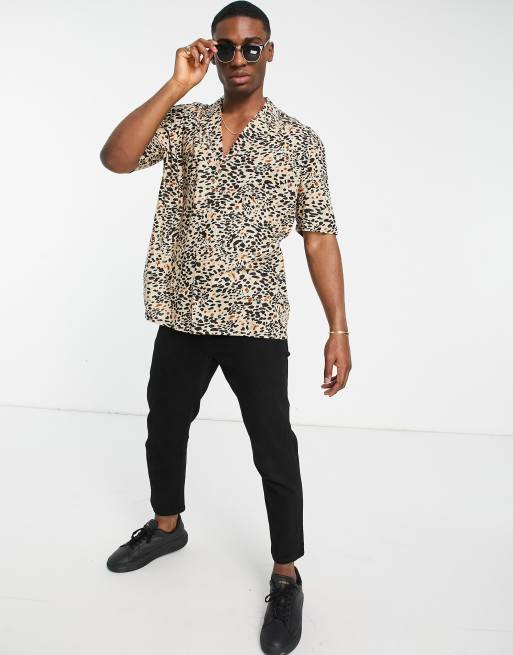 Men s Leopard Print Shirts Summer Casual Loose Button Down Short Very well made.