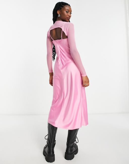 COLLUSION satin midi cowl neck midi with matching shrug in pink Very well made.
