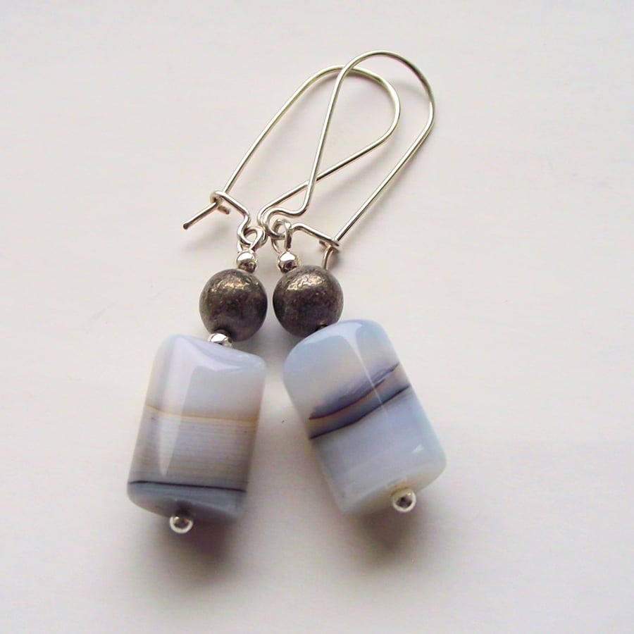 Oval Blue Lace Agate Sterling Silver 925 Gemstone Drop Dangle Earrings Very well made.