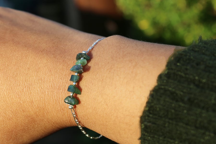 Peruvian silver bracelet gemstones. Emerald chakra stone. Handmade jewellery Very well made.