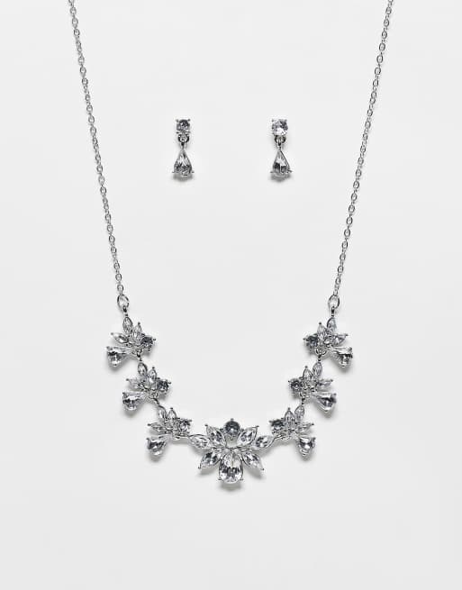 Pieces diamante necklace earrings set in silver ASOS Very well made.