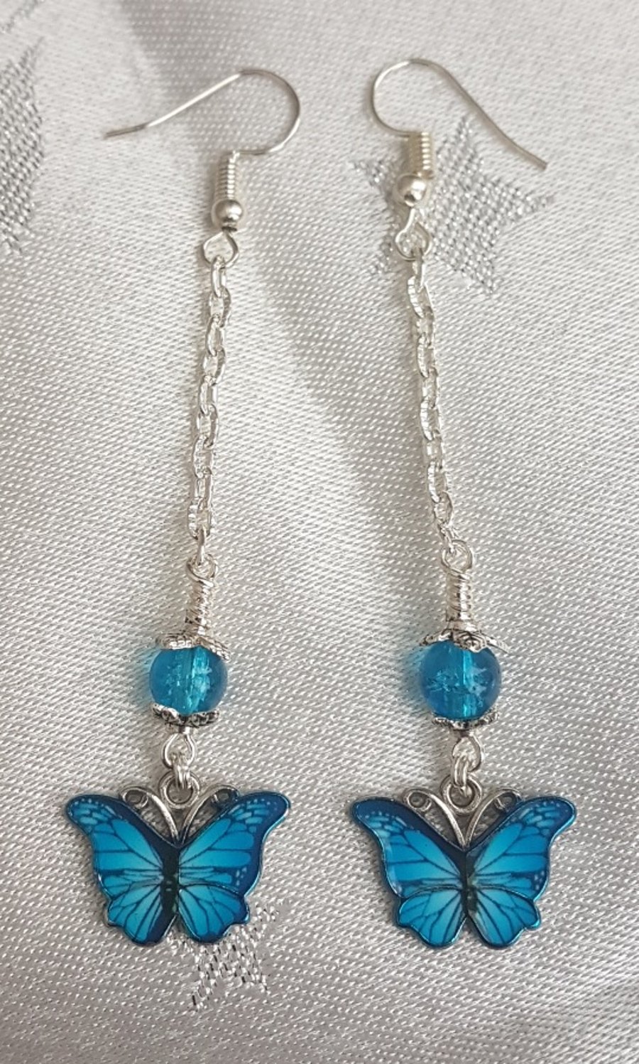 Beautiful silver plated fairy earrings with blue wings Very well made.
