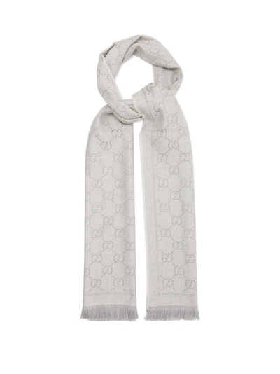 Gucci Gg Jacquard Knitted Scarf In Silver ModeSens Very well made.
