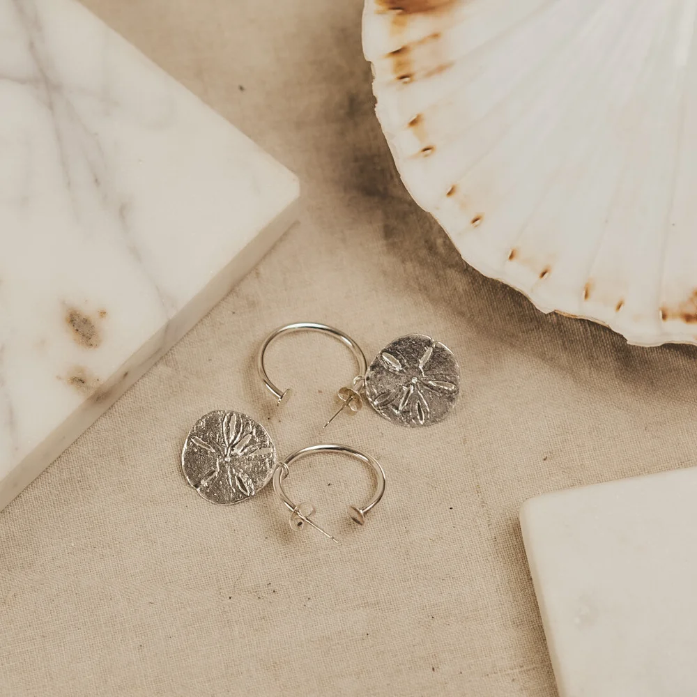 SAND DOLLAR HOOP EARRINGS Sterling Silver Wild Fine Very well made.