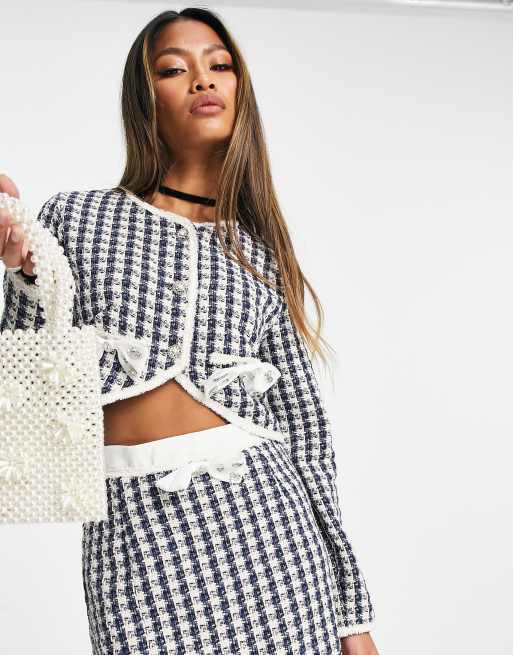 Sister Jane curved hem tweed jacket in navy and white check with bow co ord Very well made.