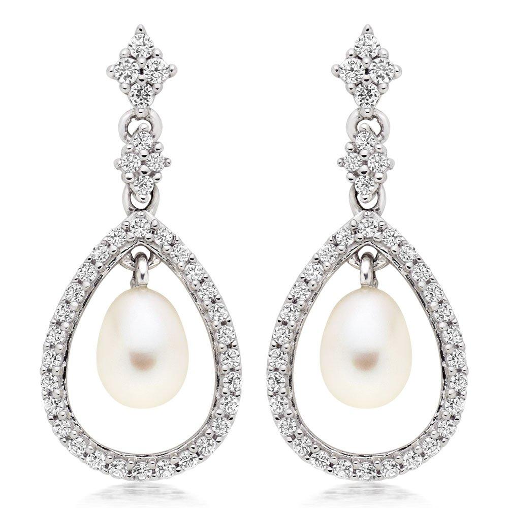Beaverbrooks Silver Cubic Zirconia Freshwater Cultured Pearl Drop Earrings Very well made.