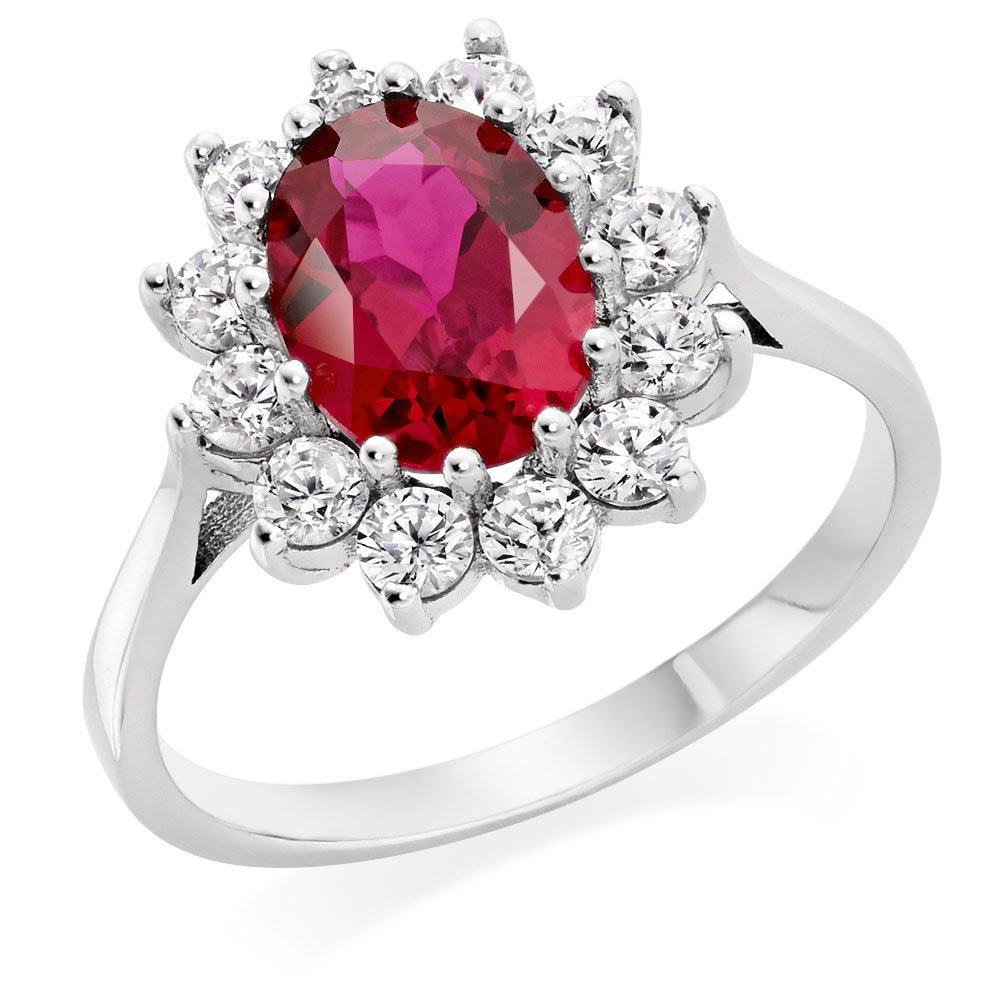 9ct White Gold Red Cubic Zirconia Halo Ring Very well made.
