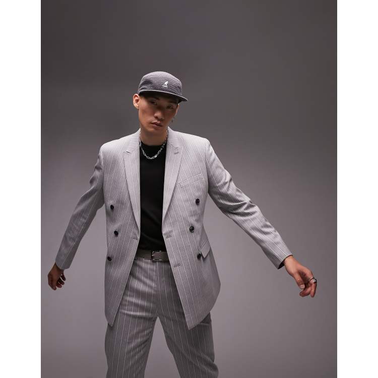 Topman slim double breasted six button striped suit jacket in grey Very well made.