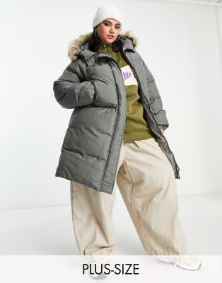 Sixth June Plus oversized hooded puffer parka coat in grey khaki Green Very well made.