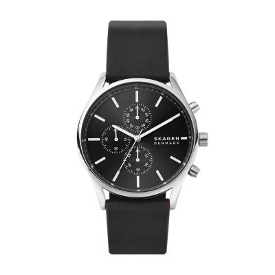 Skagen Watches Skagen Gents Holst Black Face Leather Strap Watch Very well made.