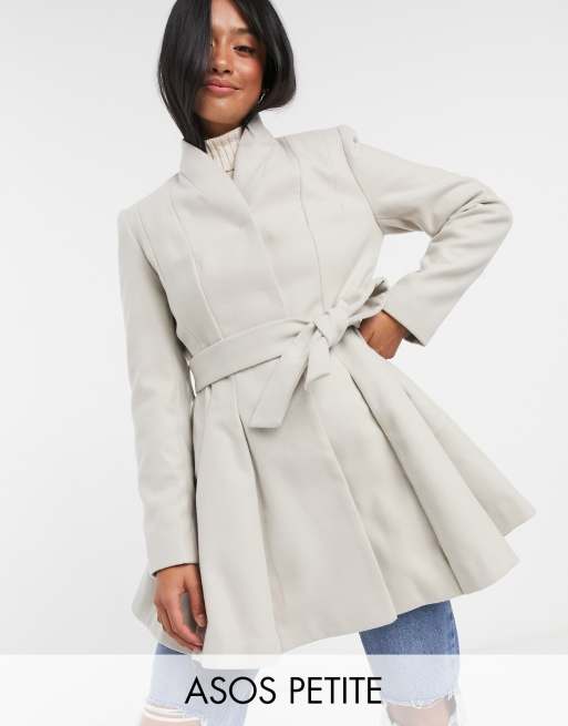 ASOS DESIGN belted glam skater coat in black Very well made.
