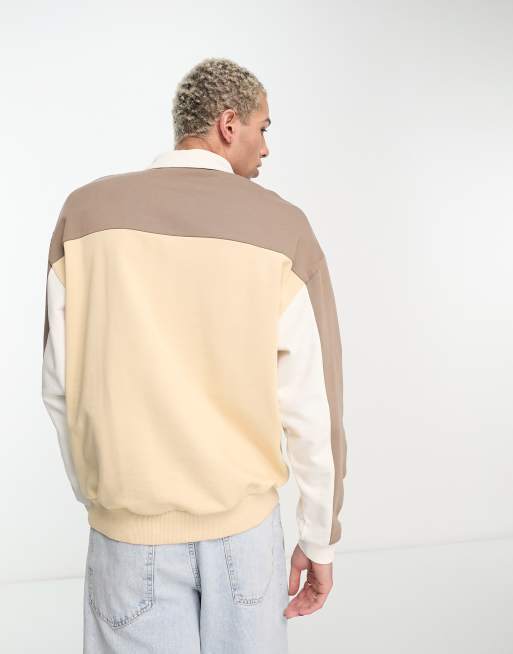 ASOS DESIGN oversized colour block polo sweatshirt in tonal beige brown Very well made.
